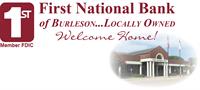 First National Bank of Burleson is a locally owned and nationally awarded bank established in 1981. It is the only bank that is actually chartered in Burleson so it is truly the only hometown bank.